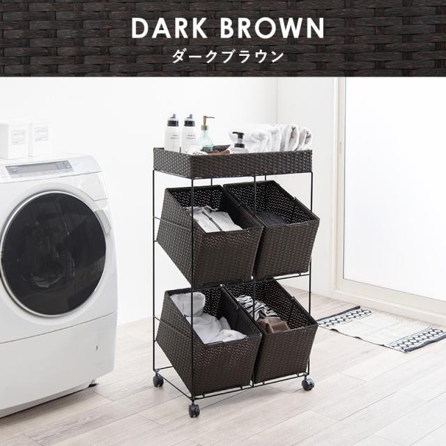 ワゴンのバスケットは傾斜タイプで、楽に衣類の出し入れやバスケットの取り外しができます。