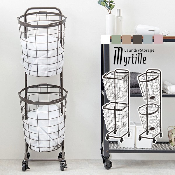 デザインと使いやすさを考えた通気性の良い「バスケット2段タイプ」のランドリーワゴン。