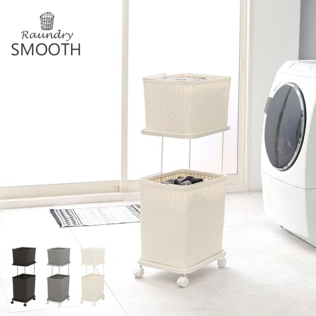 ランドリーバスケット おしゃれ 2段 大容量 スリム キャスター付き ワイヤーバスケット ランドリー収納 ランドリーワゴン 洗濯カゴ スムース ランドリーバスケット 2段 洗濯 スリム キャスター カゴ