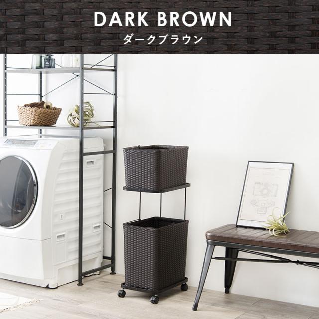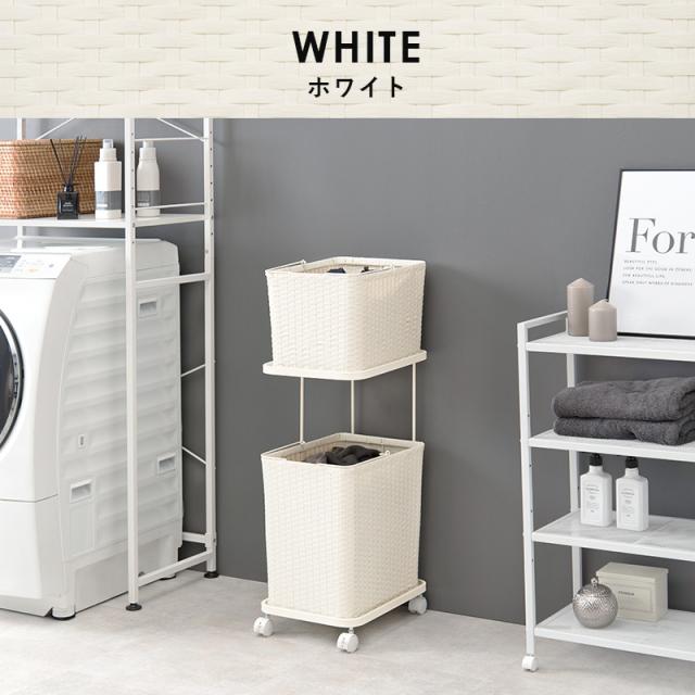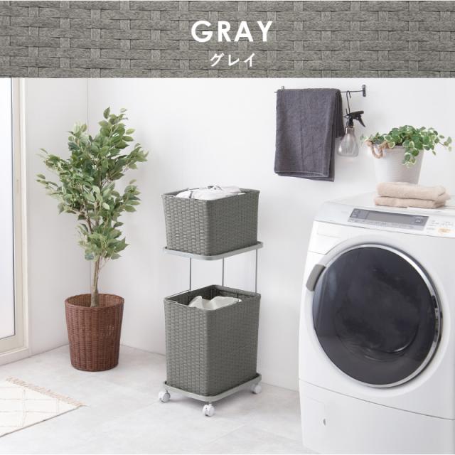 デザインと使いやすさを考えた通気性の良い「バスケット2段タイプ」のランドリーワゴン。