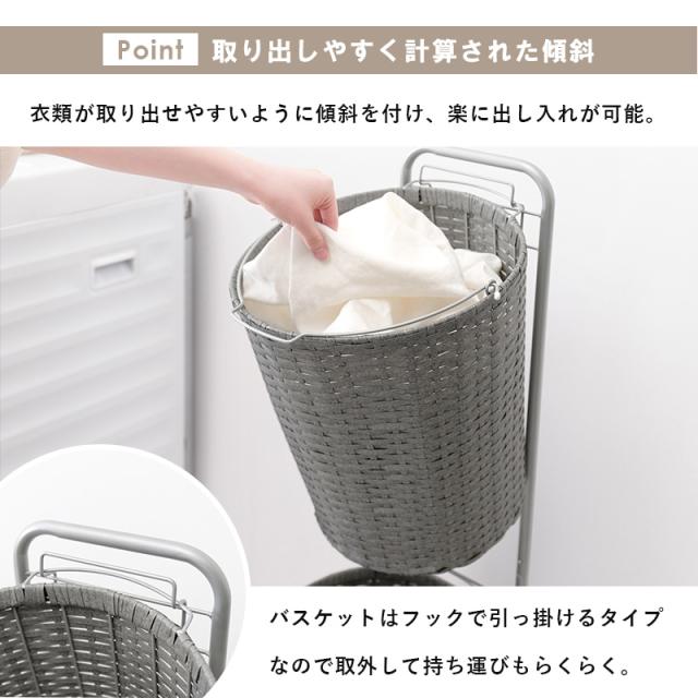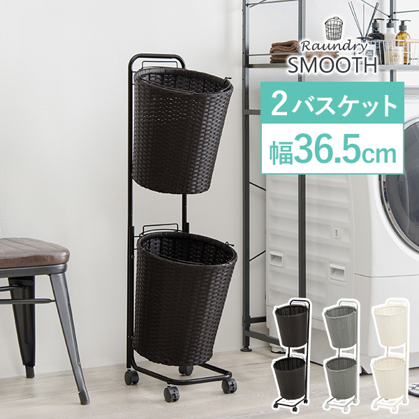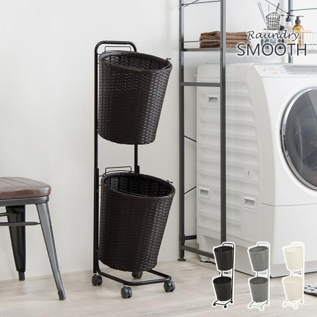 ランドリーバスケット ランドリーラック キャスター付き 2段 大容量 スリム ワゴン 洗濯かご おしゃれ 幅36.5cm ランドリー収納 スムース ランドリーバスケット 2段 洗濯 スリム キャスター カゴ