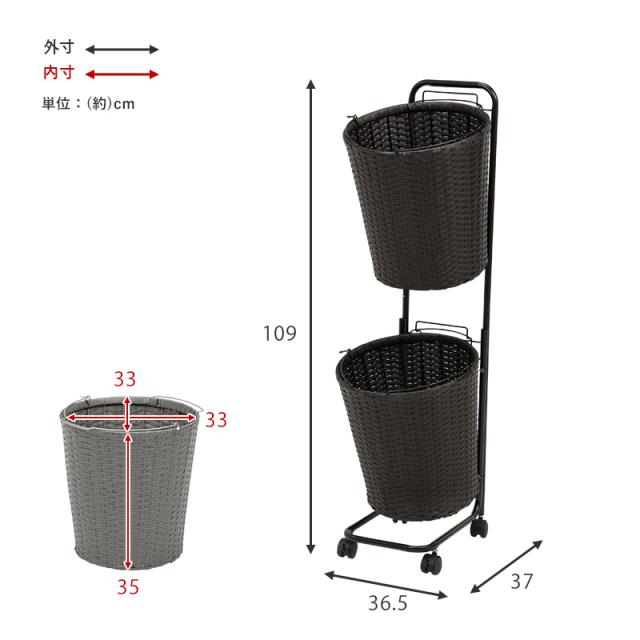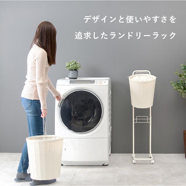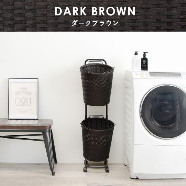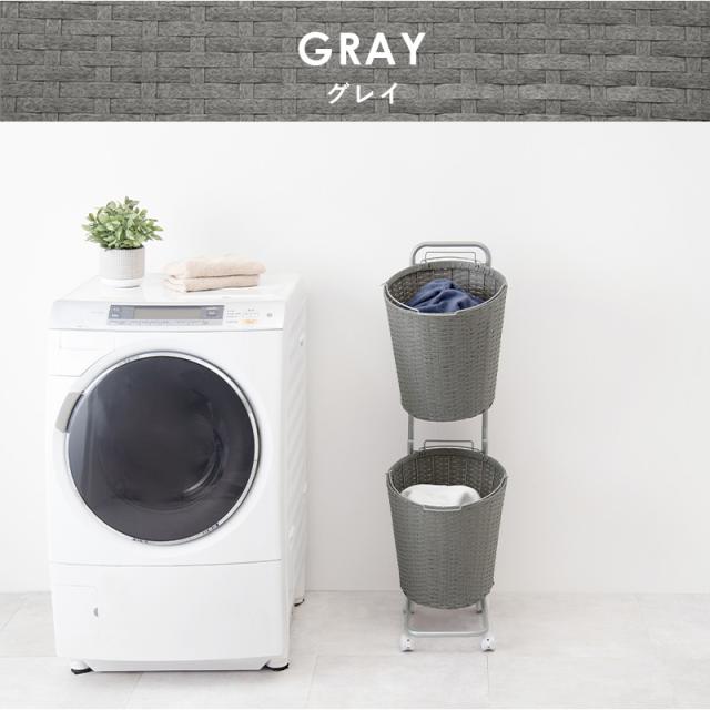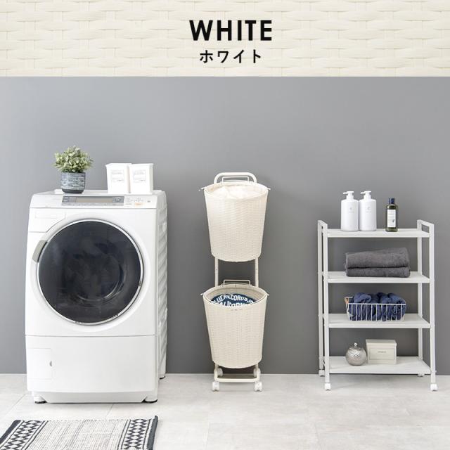 デザインと使いやすさを考えた通気性の良い「バスケット2段タイプ」のランドリーワゴン。