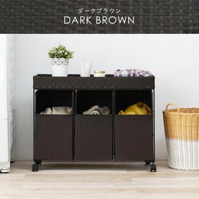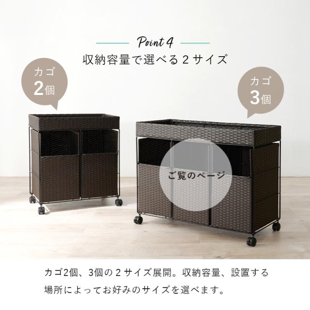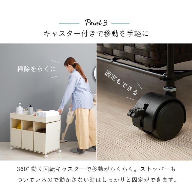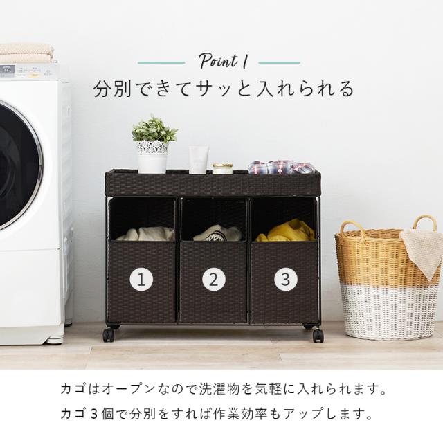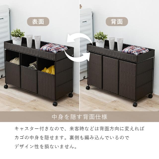おしゃれなラタン調のランドリーワゴン。インテリアに馴染みやすいシンプルでスタイリッシュなデザインです。