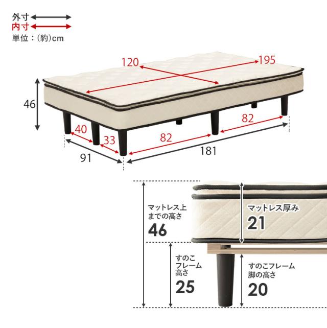 幅120×奥行195×高さ46cm(マットレス厚み約21cm)