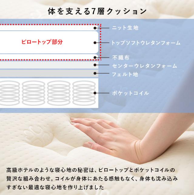 高級ホテルで採用されているピロートップを使用した極上の寝心地。
