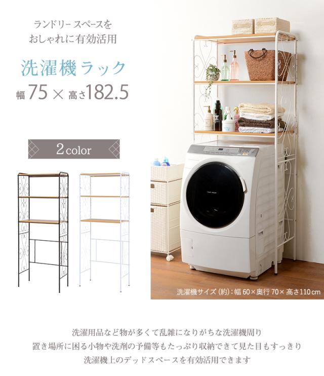 ランドリーラック 洗濯機ラック ランドリー収納 洗濯ラック 幅75cm 洗濯機収納 棚 棚板 おしゃれ ブラック ホワイト アイアン エレガント ランドリーラック 洗濯機 ラック おしゃれ 洗濯機ラック