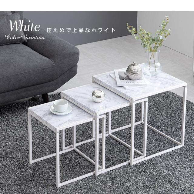 サイドテーブル おしゃれ 白 テーブル ネストテーブル 大理石柄 リビング ナイトテーブル コーヒーテーブル センターテーブル 角型 マーブル