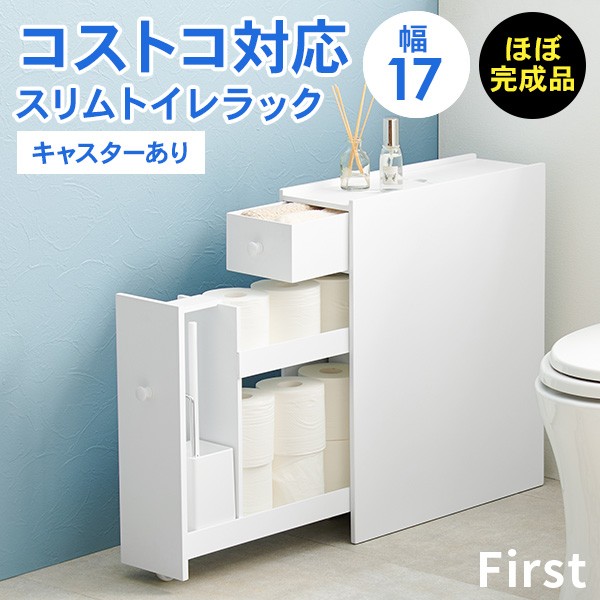 トイレ 収納 スリム トイレットペーパー 収納棚 トイレラック おしゃれ トイレ掃除 トイレブラシ 隙間収納 白 ホワイト 完成品 幅14 First ファースト スリムトイレラック キャスター付き 幅14cm ホワイト オシャレ