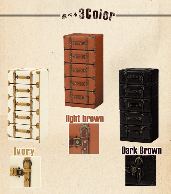 重厚感あふれる合皮レザー張りと使い込んだような金具がヴィンテージな雰囲気を盛り上げます。
