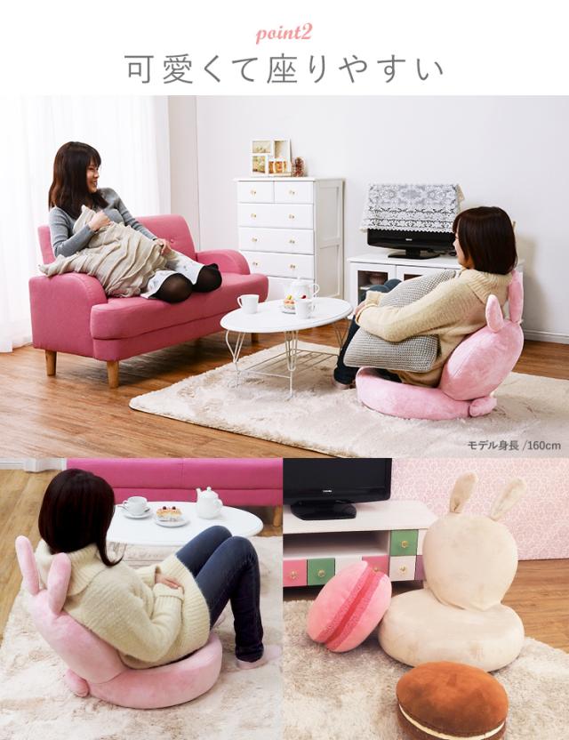 座椅子 かわいい 可愛い うさぎ ウサギ 姫系 おしゃれ コンパクト リクライニング 折りたたみ クッション ピンク ベージュ 送料無料