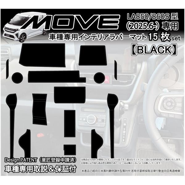 2025年6月発売のダイハツ用 ムーヴ(MOVE) LA850/LA860S型)専用 インテリアラバーマット(ブラック) 15枚セットです