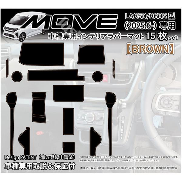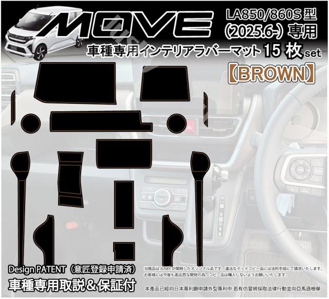 2025年6月発売のダイハツ用 ムーヴ(MOVE) LA850/LA860S型)専用 インテリアラバーマット(ブラウン) 15枚セットです。