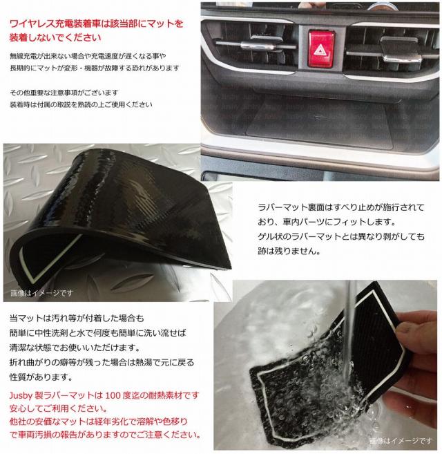 ・ ワイヤレス充電装着車は該当部には当マットを使用しないでください(無線充電が遅くなったり長期的にマット変形や機器の故障等の可能性がある為)