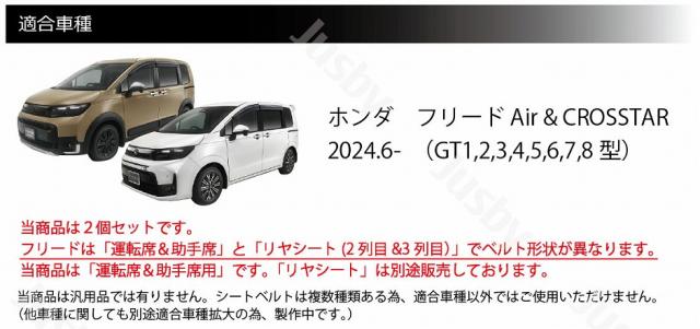2024.6月発売のホンダ フリード(GT型)の「運転席&助手席」 に装着可能です。(リヤシート用は別途販売しています)