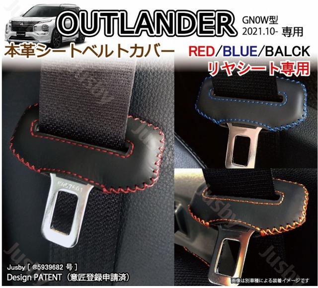 三菱 アウトランダー PHEV GN0W型用 本革シートベルトカバー(後部座席)レザーカバー 赤 青 黒 ステッチ ドレスアップ パーツ アクセサリー 本皮 OUTLANDER