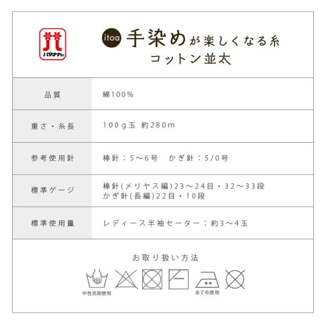 | 商品名 | ハマナカ itoa 手染めが楽しくなる糸 コットン並太 |