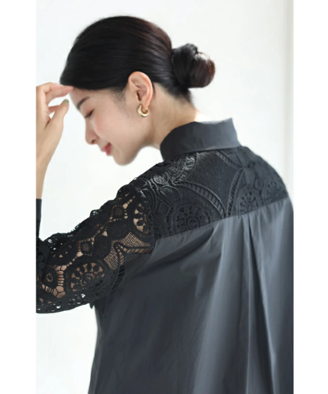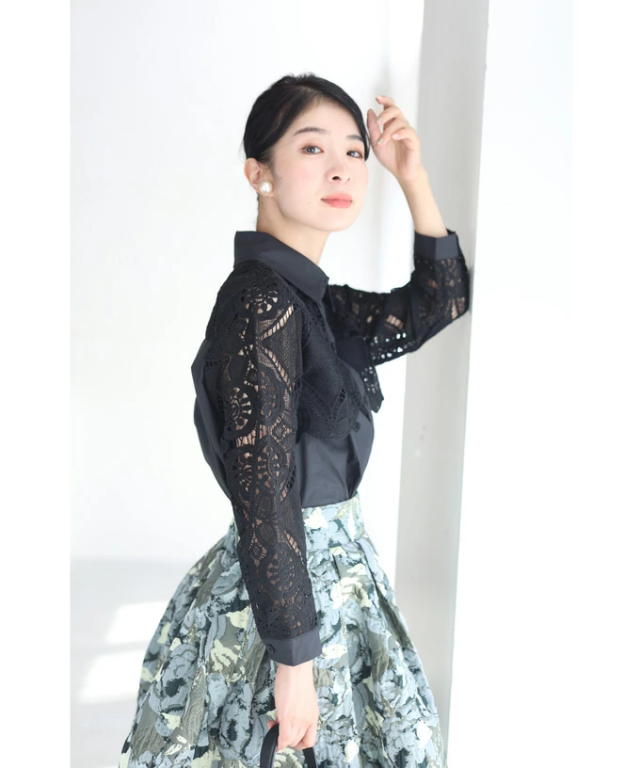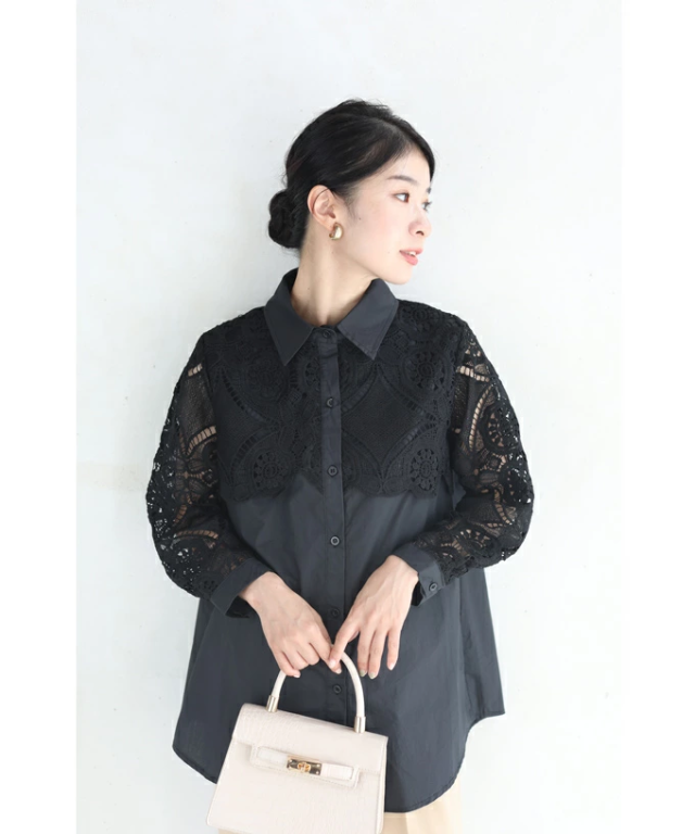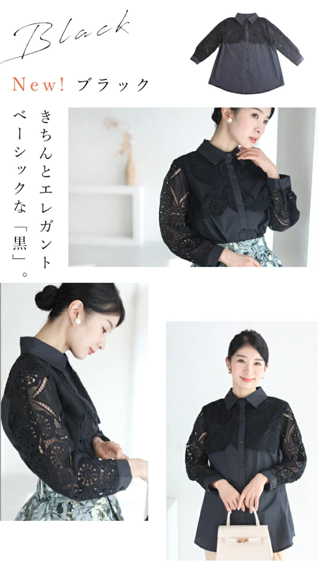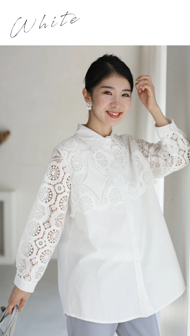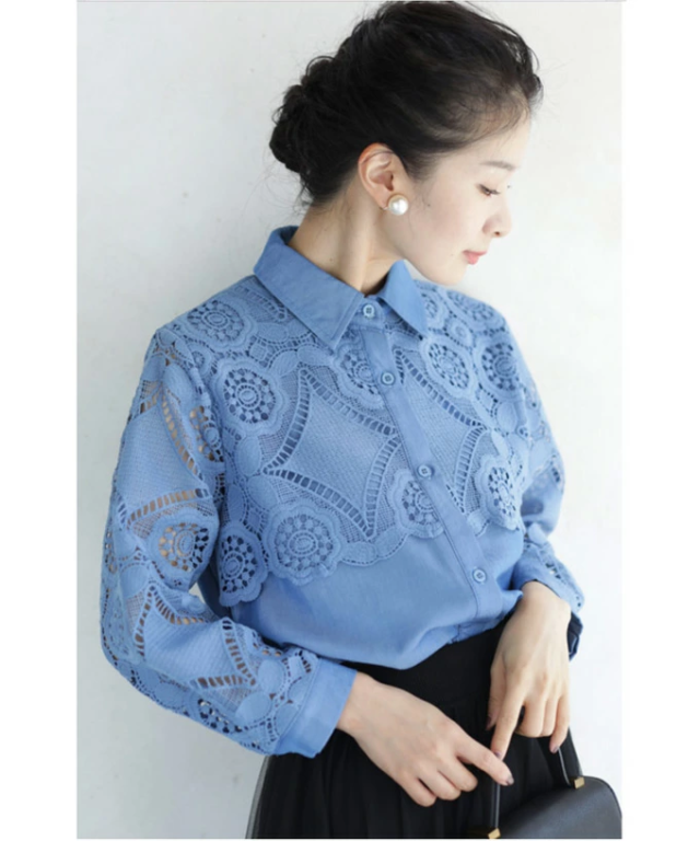 再入荷8月9日 美しいカットワークの花レースシャツトップス(S~2L対応)w50037nc cawaii 刺繍 シャツ ブラウス 長袖 春夏 シアーシャツ 袖レース 透け感 ロングシャツ 大きいサイズ 体型カバー 二の腕 お腹 お尻 母の日