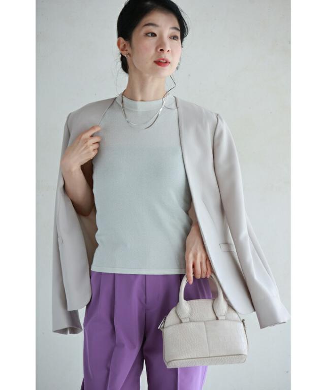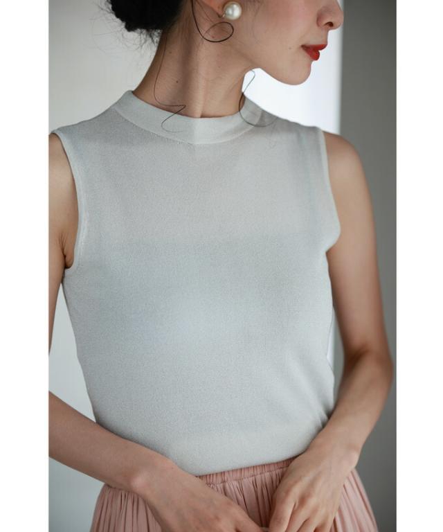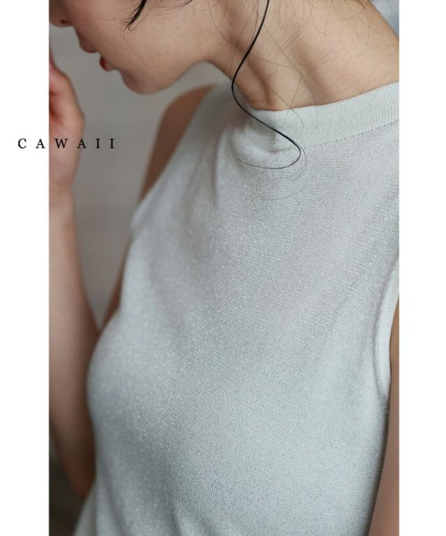 再入荷4月1日 ささやかに煌めく伸びやかカットソートップス トップス ノースリーブ レディース ファッション 夏服 着回し 重ね着 インナー cawaii w53685 S対応 ホワイト サマーニット ラメ 日常使い キレイめ シンプル ミセス 30代 40代 50代