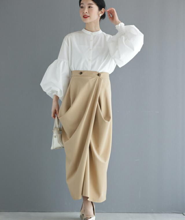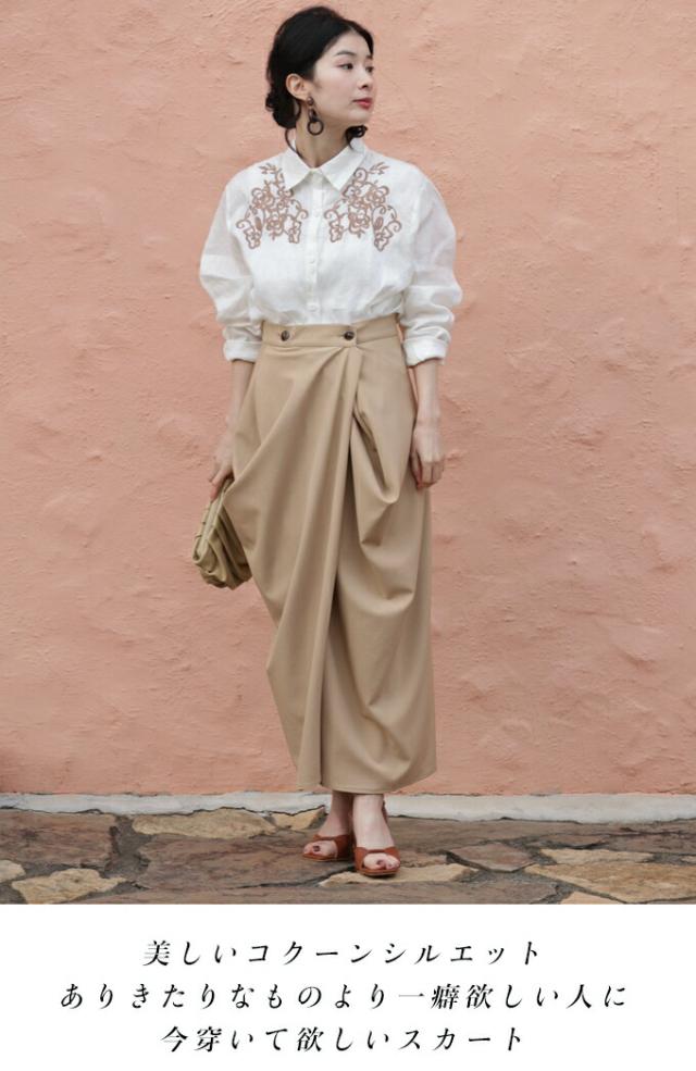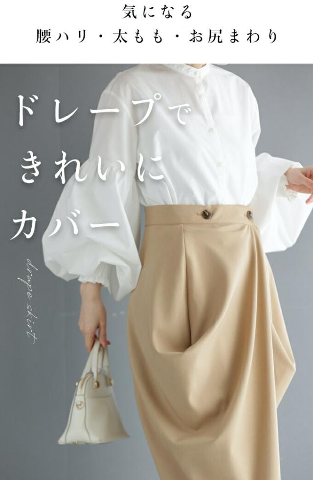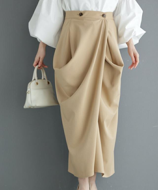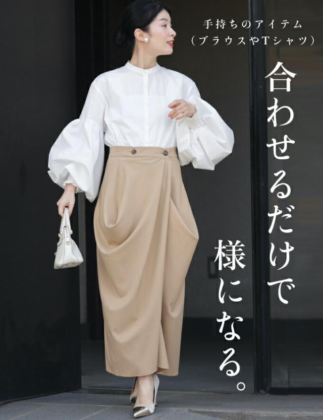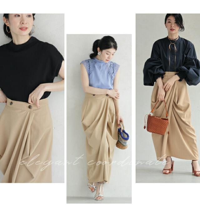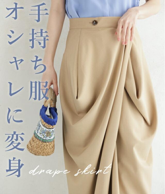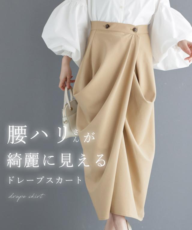 再入荷8月29日 腰ハリさんがきれいに見える ドレープスカート cawaii w60450ps S~L対応 春服 春物 夏 夏服 夏物 ベージュ エレガント キレイめ 女性らしい お洒落 個性的 レディース ファッション ミセス 30代 40代 50代 母の日