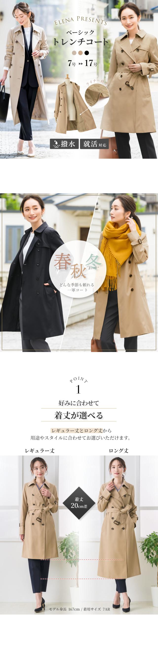 ELENA エレナ 即納 翌日配送 春アウター 春コート 秋コート ライトアウター アウター きれいめ おしゃれ トレンチ トレンチコート スーツアウター ビジカジ OL 通勤服 オフィスカジュアル キャリア スタイリッシュ フォーマル キルティングライナー付 通勤 ビジネス オフィス カジュアル リクルート 大学生 新社会人 就職活動 就職 面接 ベーシック 服装 母親 母 ママ レディース 女性 20代 30代 40代 50代 大人 上品 こなれ ジャケット 長袖 総裏地 美ライン 細見え 7号 9号 11号 13号 15号 17号 S M L LL 2L XL LLL 3L XX 4L