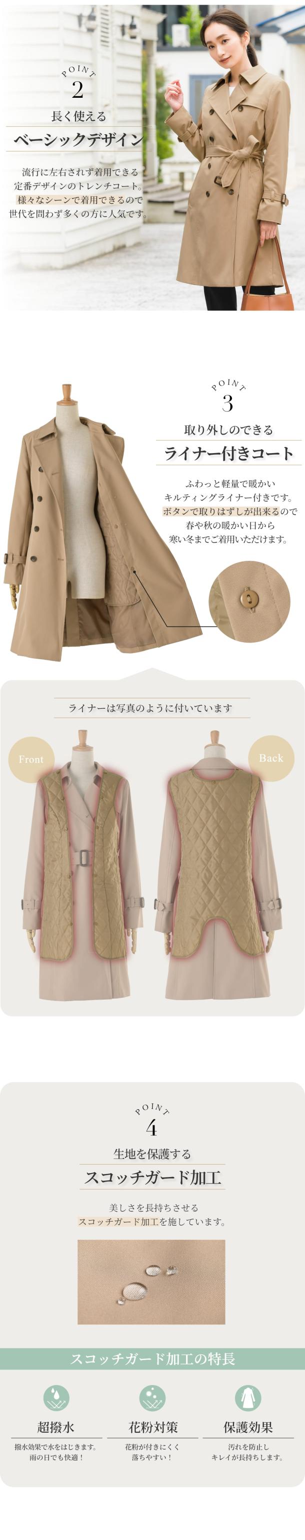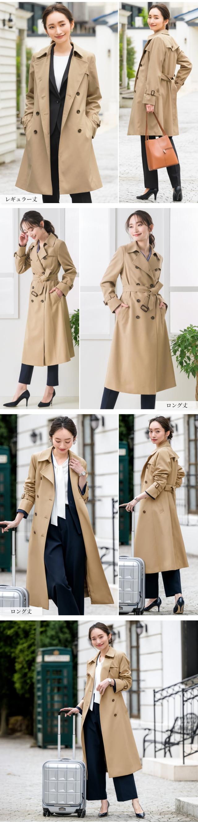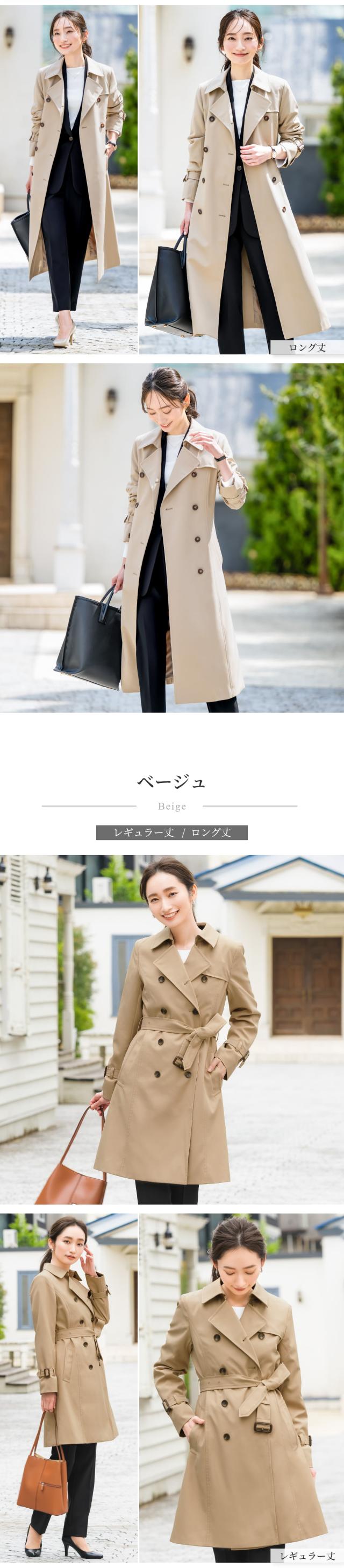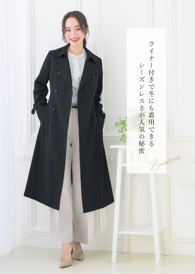 ライナー付 トレンチコート レディース 撥水 防汚 ロング丈 ミドル丈 上着 アウター 秋 トレンチ コート 通勤 就活 OL ビジネス オフィス フォーマル リクルート スーツ 冬 ベージュ 入学式 卒業式 大きい 小さいサイズ 20代 30代 40代 50代