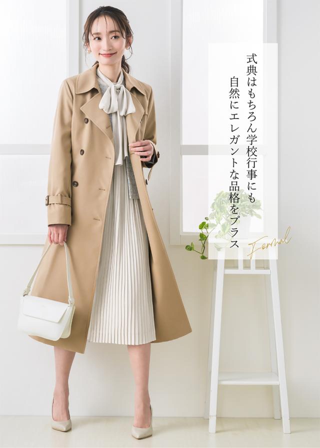 シンプル・ベーシックなデザインなので、通勤やビジネス、就活・転職活動のアウターとしてはもちろん、七五三やお宮参りのフォーマルシーンに、きれいめスーツと合わせて着用しても◎シーンを選ばずにご着用いただけます。
