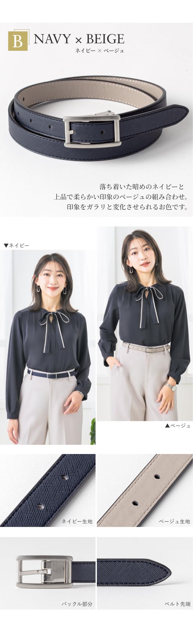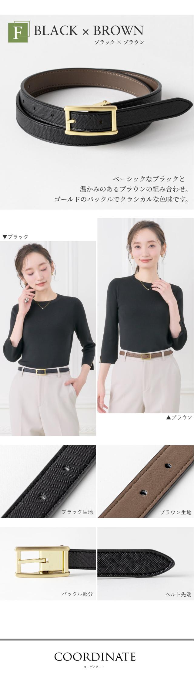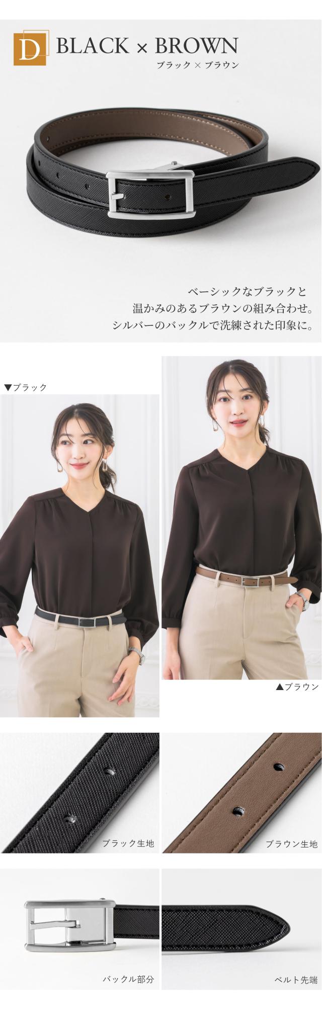 ベルト レディース リバーシブル サイズ調節可 大きいサイズ 太 リクルート 通勤 オフィス フェイクレザー ウエストマーク ビジネス ママ フォーマル カジュアル OL 太め 細め スーツ ブラック ネイビー ブラウン メール便送料無料 1/2