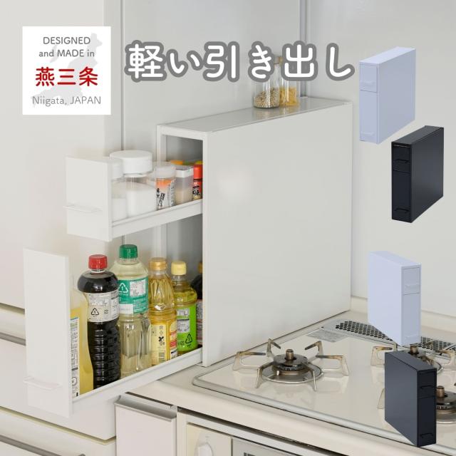 隠せる 隙間 調味料ラック 2段 幅13 奥行50 高さ48.4cm 引き出し スパイスラック スリム 大容量 コンロ横 キッチン収納 隙間収納 キッチンストッカー 燕三条 日本製 【送料無料】
