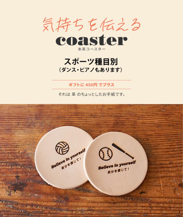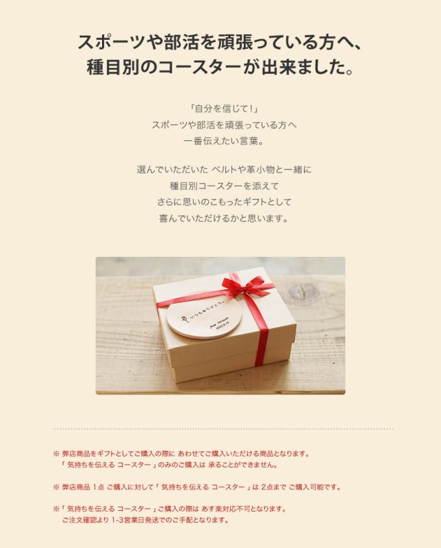 【ギフト】本革コースター 気持ちを伝えるコースター 部活 習い事 趣味 ベルトや革小物と一緒に 商品と一緒にご購入ください。名入れ レーザー刻印