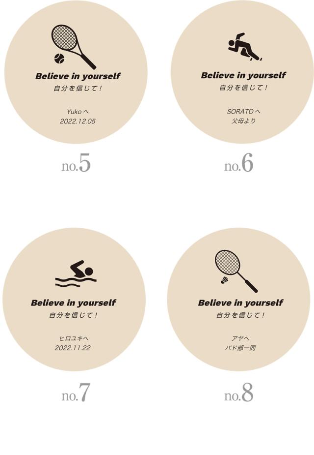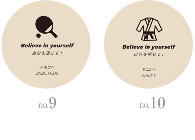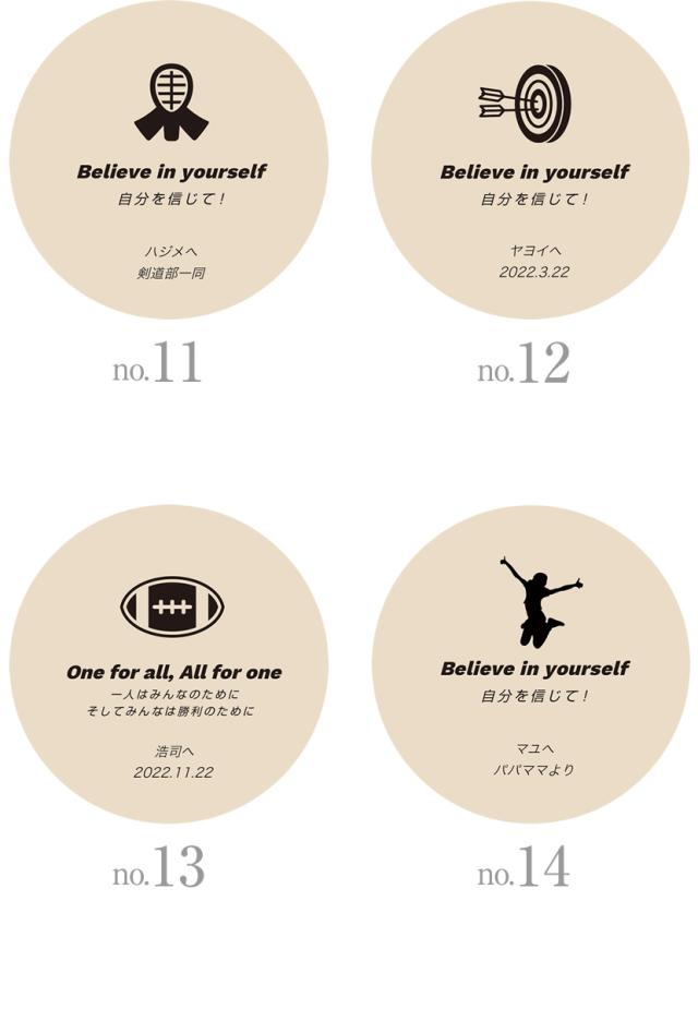 ※お好きなメッセージをお選びいただき、備考欄に「1行目:●●」「2行目:●●」のように入力してください。どちらも刻印しない場合は、入力不要です。