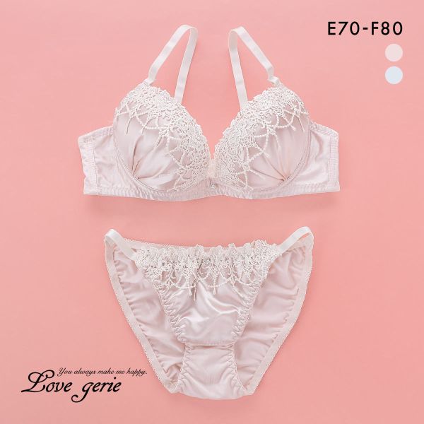 上品サテン&アップリケ☆Wパッドで盛り力抜群 高見えブラセット