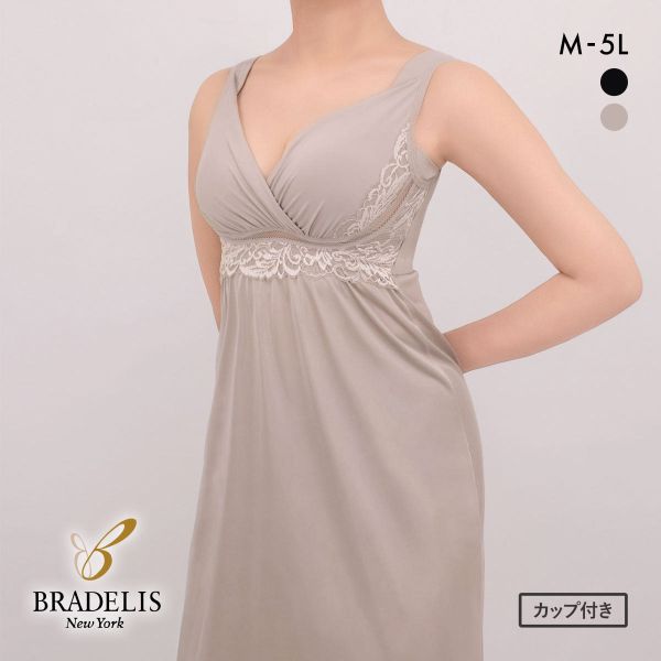 ブラデリス 寄せ上げ美胸 綿混キャッチャーカップ ブラスリップ カップ付き M-5L ノンワイヤー ブラトップ 吸汗 消臭 BRADELIS NY PEACE