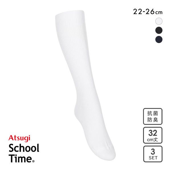 アツギ ATSUGI スクールタイム 32cm丈 リブソックス キッズ ジュニア 3足組 靴下 学生 ハイソックス 綿混 22-26cm