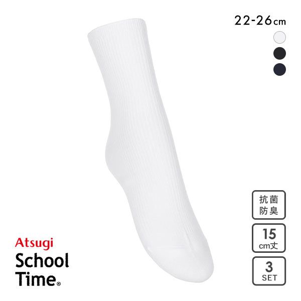 アツギ ATSUGI スクールタイム 15cm丈 リブソックス キッズ ジュニア 3足組 靴下 学生 綿混 ショート丈 22-26cm