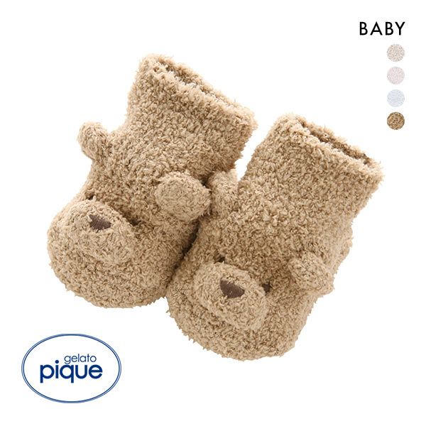 ジェラートピケ★ベアの顔をデザインしたもこもこベビーソックス