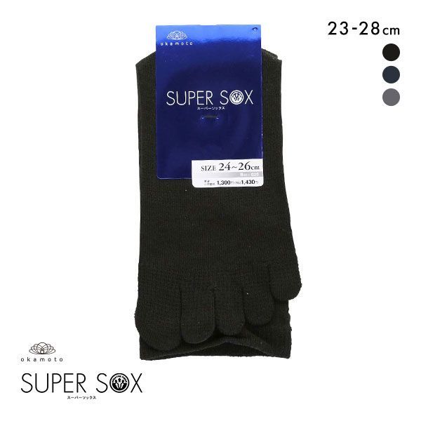スーパーソックス 5本指 クルー丈 ムレない におわない 靴下 23-25cm 24-26cm 26-28cm SUPER SOX