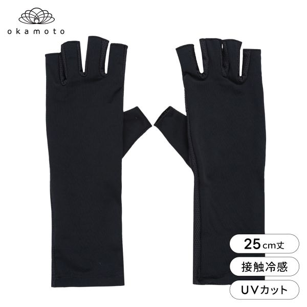 プラチナモア アームカバー ショート丈 冷感キープ ひんやり 吸水速乾 UVカット 指切 半指 夏 日焼け対策 レディース okamoto