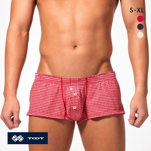 TOOT独自の、フロントがカップ形状になった「デラヴェサッカー フィットトランクス」。フロント部分は開き見せでなく本開きを施し、利便性を向上させました。