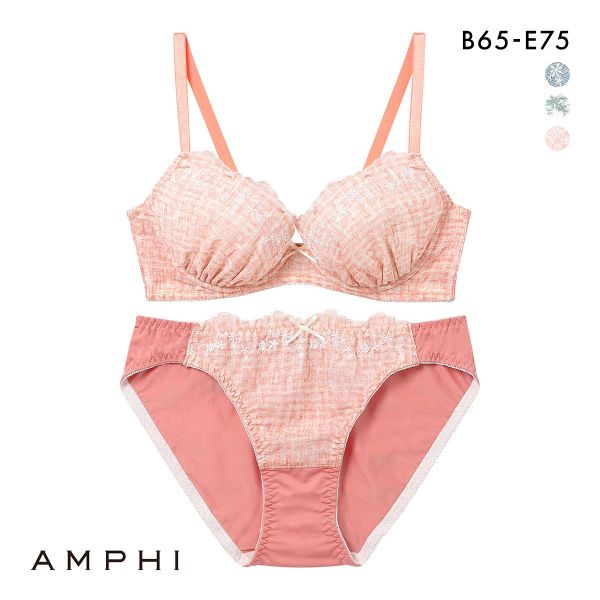 アンフィ ブラ&ショーツセット まる胸メイク 刺繍 プリントレース ABCDE ブラジャー ショーツ セット 大きいサイズ AMPHI BCC244