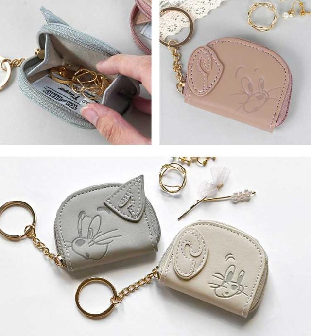 アクセサリーケース トムとジェリー 持ち運び 小さい 携帯用 コンパクト かわいい おしゃれ 小物入れ ミニ ジュエリー ポーチ コインケース 薬ケース 薬入れ ピルケース 小銭入れ バッグチャーム キーホルダー 収納 合皮 グレー ベージュ ブラウン プレゼント トラベル 旅行