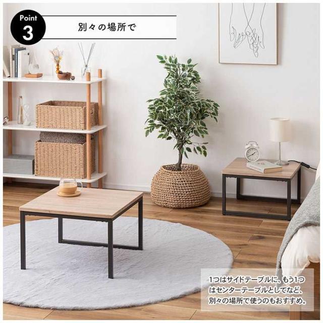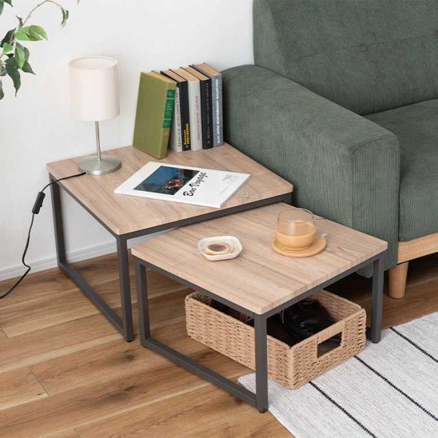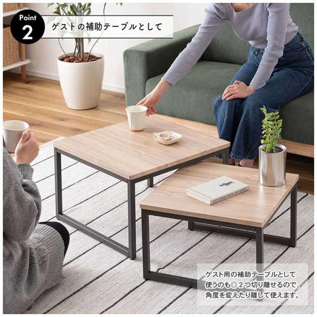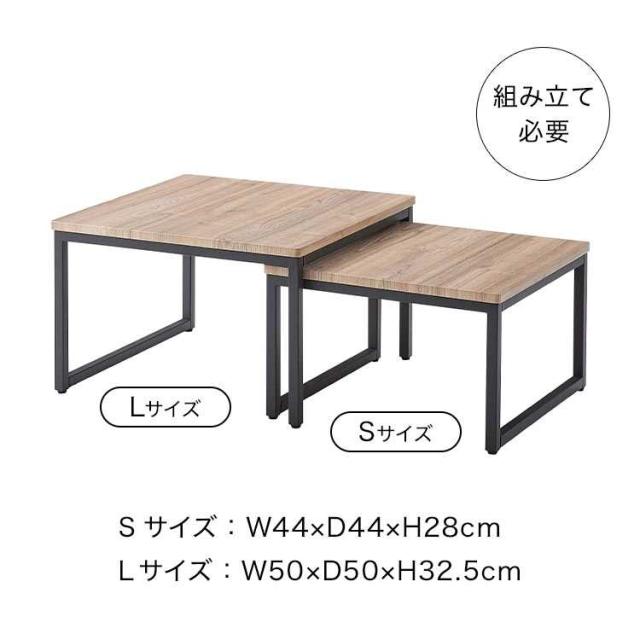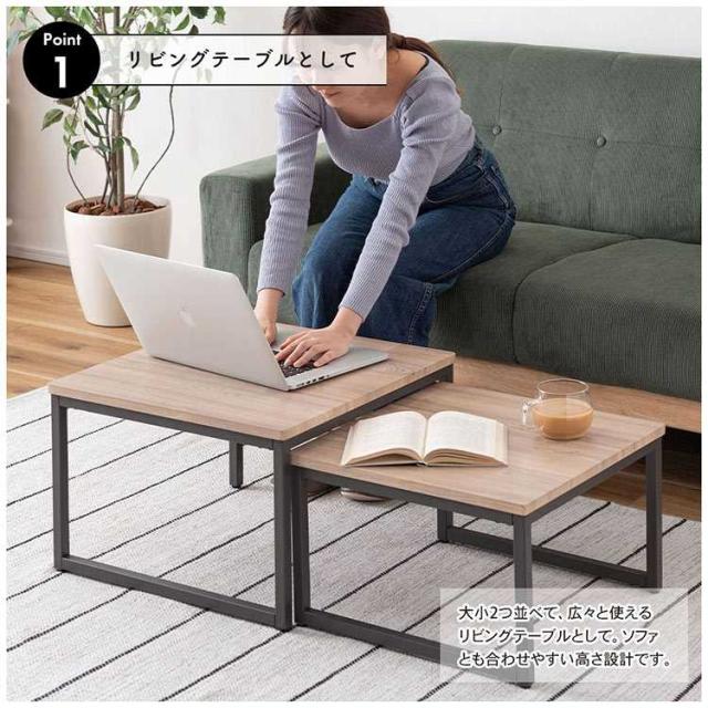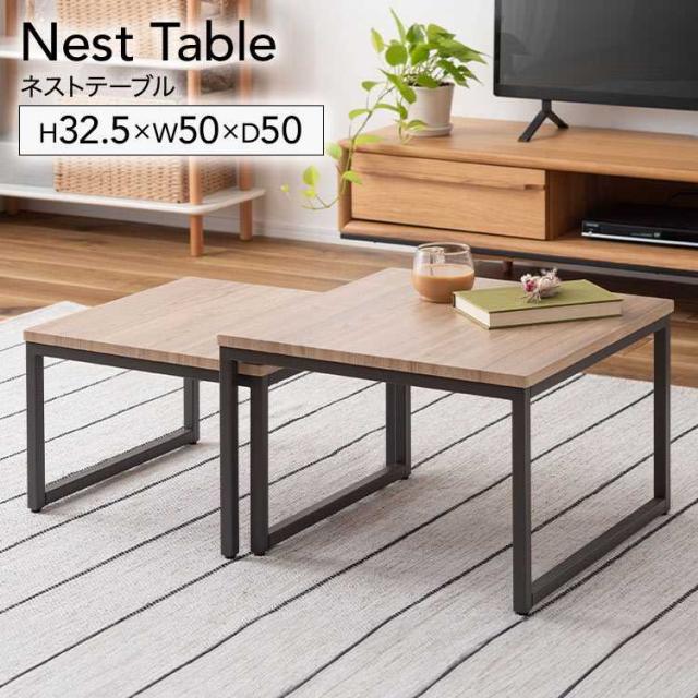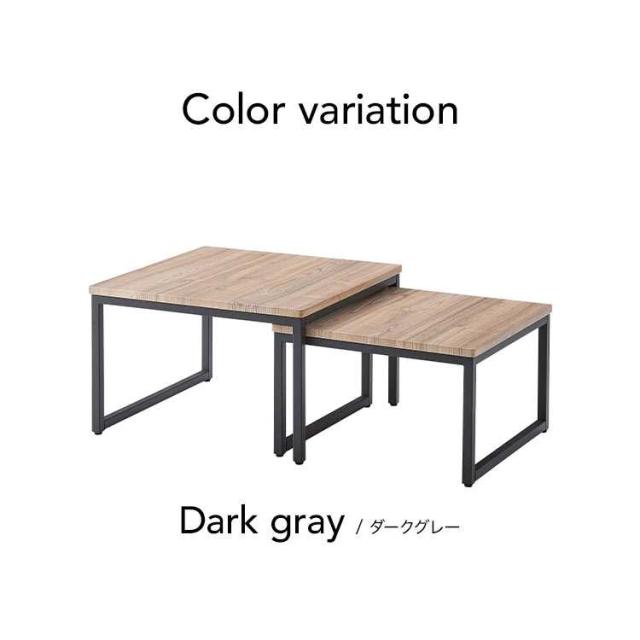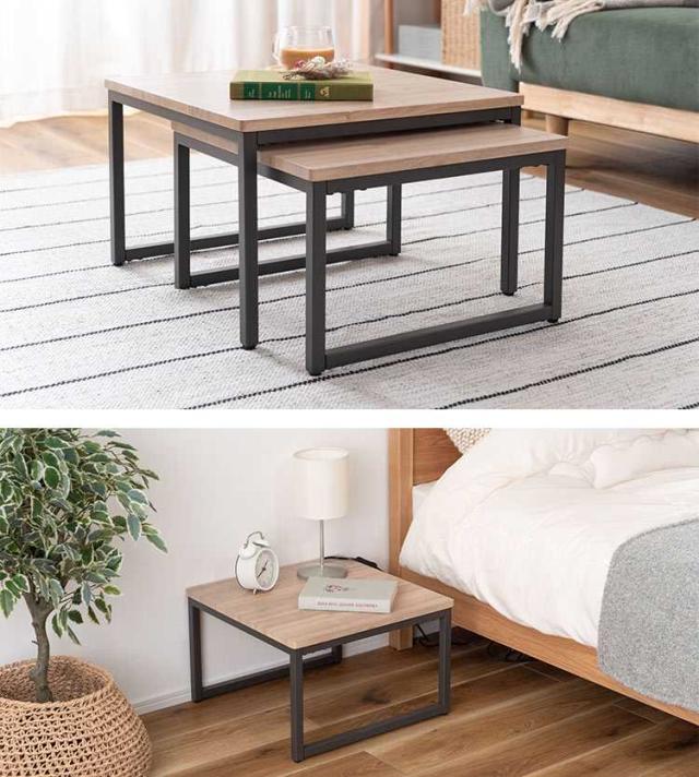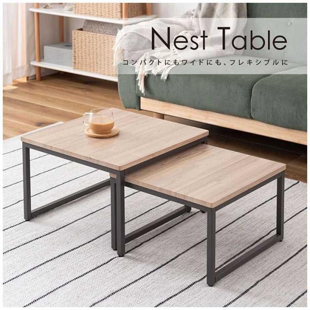 ネストテーブル 2個セット テーブル ローテーブル コンパクト リビングテーブル おしゃれ ソファテーブル センターテーブル サイドテーブル 机 四角 正方形 木目 ナチュラル シンプル ウッド モダン 北欧 アイアン スチール ダークグレー 小さい 一人暮らし 新生活 引越し