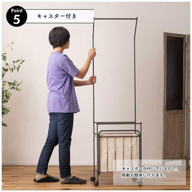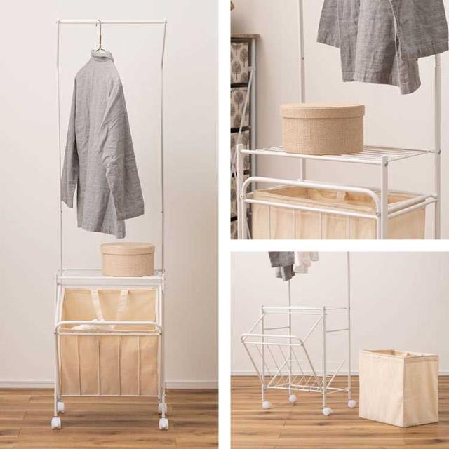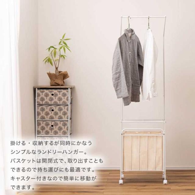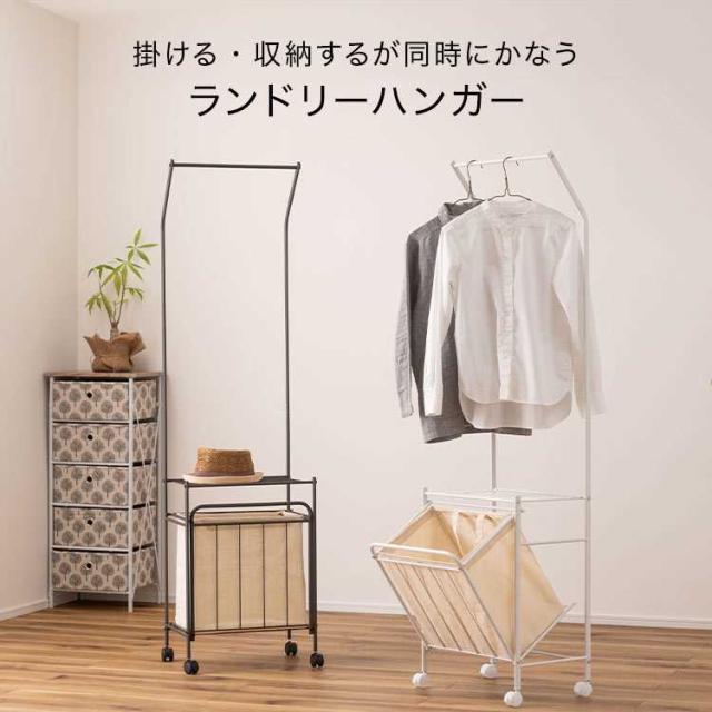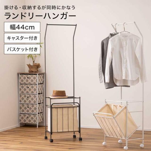 ハンガーラック スリム キャスター ランドリーハンガー ラック ランドリーラック コンパクト 省スペース 鞄置き バスケット付き 棚付き 収納ボックス 洗濯 洗濯物 衣類 収納 シンプル 洗濯物入れ ダークグレー ホワイト 白 丈夫 リビング 一人暮らし 寝室 新生活 インテリア