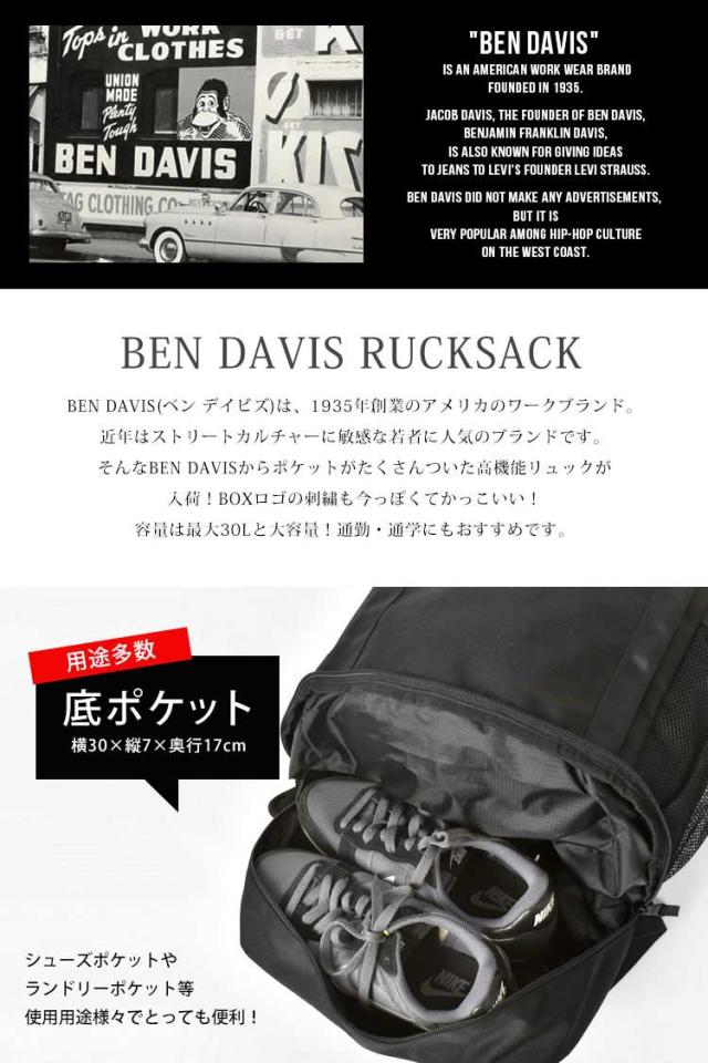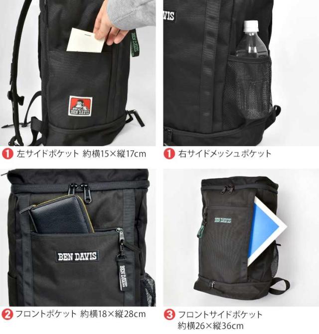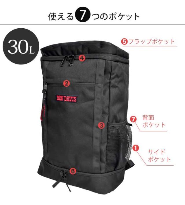 リュック メンズ バックパック BEN DAVIS ベンデイビス 大容量 リュックサック 30L カバン ボックス型 スクエア おしゃれ ブラック 撥水 多機能 レディース 部活 通学 シンプル アウトドア 丈夫 bdw8302 bdw8011 A4 B4 中学生 高校生 大学生 大人 通勤 かっこいい 男女兼用
