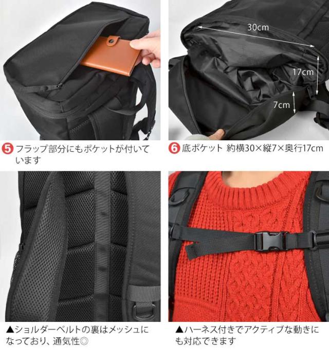 撥水生地を使用するなどの機能に加え、 しっかり入る容量を兼ね備えた多機能リュック。 ボックス型で出し入れしやすく、豊富なポケットが配置されて荷物の収納がしやすいです。 日常使いから部活や旅行などでも様々なシーンで使えるリュックです。