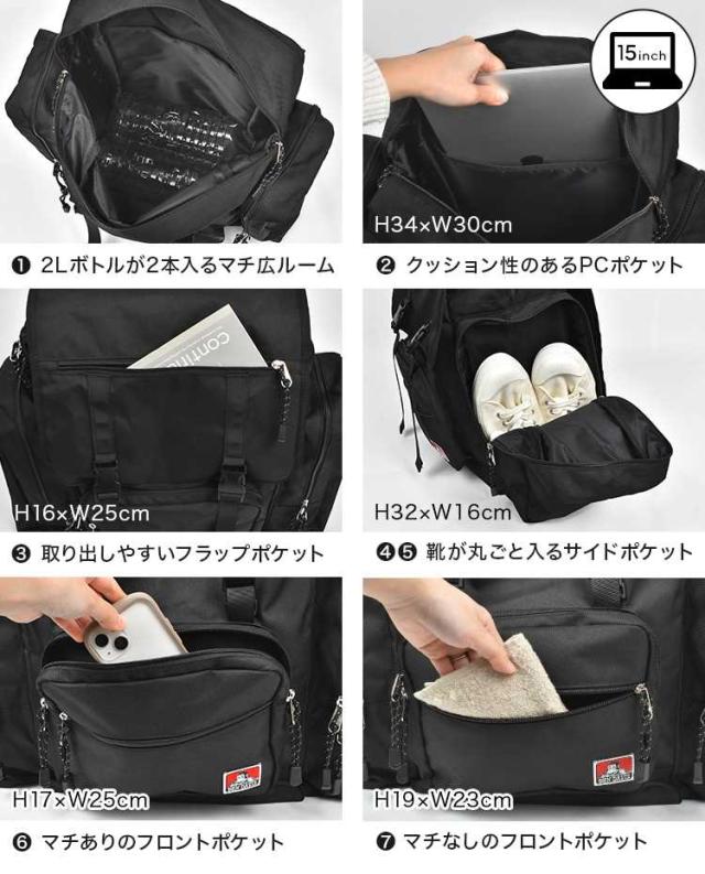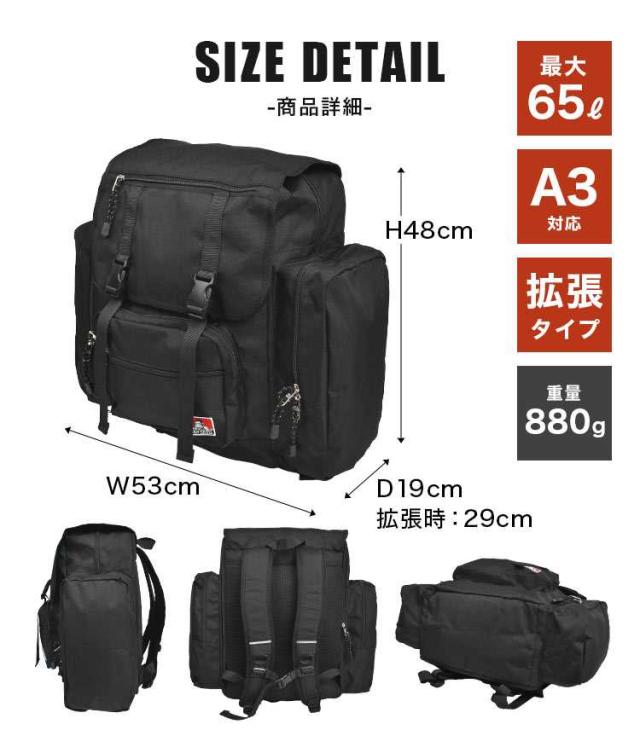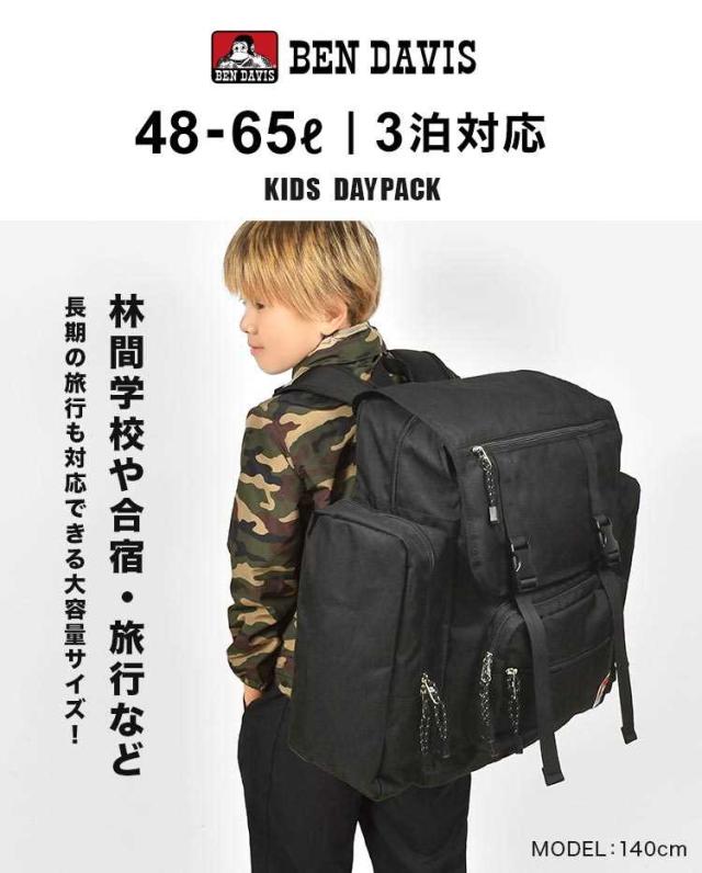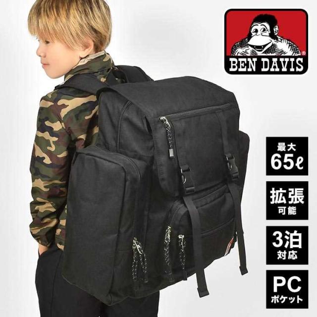 林間学校 リュック 修学旅行 サブリュック BEN DAVIS ベンデイビス 男の子 女の子 子供 大容量 大きめ 大型 リュックサック 修学旅行カバン 拡張 2泊 3泊 キッズ 小学生 中学生 高校生 旅行バッグ シンプル おしゃれ A4 B4 45l 65l BDW8415 黒 ブラック 旅行 合宿 キャンプ