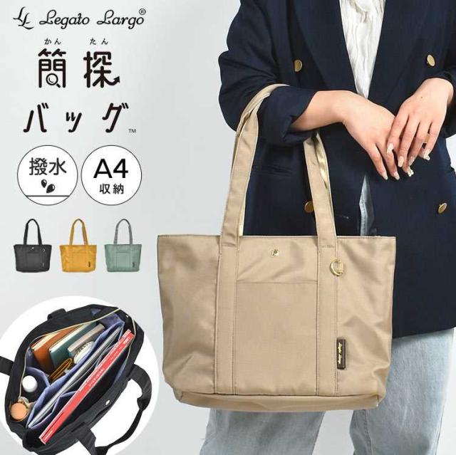 トートバッグ Legato Largo レガートラルゴ 簡探バッグ レディース 通勤 a4 仕切り 軽量 通学 軽い 大きめ 大容量 綺麗め 上品 マチあり マチ付き ファスナー付き おしゃれ 整理整頓 肩掛け 女性 シンプル 無地 仕事 ブラック グレージュ 黒 緑 学生 社会人 人気 ブランド