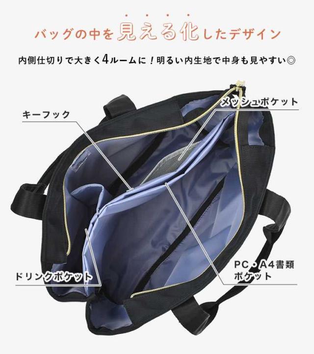 【簡探バッグ A4トートバッグ】 『あれどこいった?時間がないのに見つからない!』を無くしてくれる、かばんの中を見やすくしたデザインの簡探バッグ。撥水加工を施した生地で雨の日も安心して活用いただけます。内側仕切りで大きく4ルームに分けられており、PCやA4書類、ペットボトルや手帳など分けたいものを簡単に仕分けられます。内生地も明るいので底のものも見えやすいのが嬉しいポイント。 探し物が見つかりやすいバッグで毎日の無駄な時間を減らしませんか。 ■ブランド名 Legato Largo / レガートラルゴ ■品番 LT-F3412 ■サイズ 約H270×W325×D150mm 持ち手:約62cm ■容量 約11L ■重量 約460g ■素材 ポリエステル ■生産国 中国 ■ご注意 ※表記サイズより、多少の誤差があることがございます。 ※商品の画像はできる限り実物に近づけるよう配慮しておりますが、お使いのモニターやご覧になる環境によりましてはカラーの見え方に差が出る場合がございます。ご了承くださいませ。 レビュー商品の評価: お店の情報お店の評価: 連絡・応対 - 配送スピード - 梱包 - 注目の特集 | |||||||||||||||||