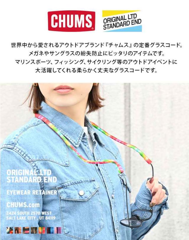 サングラス ストラップ CHUMS チャムス メガネ グラスコード メガネチェーン 眼鏡 首掛け おしゃれ ブランド 派手 アウトドア キャンプ サーフィン 太紐 耳が痛くなりにくい コットン 綿 カジュアル 総柄 釣り 海 スポーツ サイクリング 大人 子供 ロゴ かわいい 紛失防止