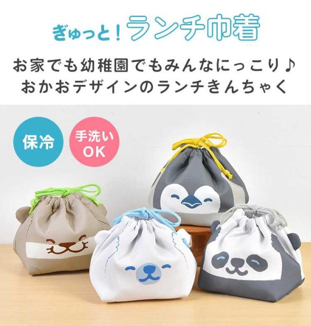 ランチ巾着 キッズ 保冷 お弁当巾着 子ども アニマル 巾着 動物 巾着袋 洗える ランチグッズ 保育園 幼稚園 小学生 ランチバッグ 保冷バッグ お弁当グッズ しろくま パンダ ペンギン カワウソ お弁当袋 きんちゃく 保冷生地 手洗いOK 子供 お弁当バッグ 遠足 通園 通学