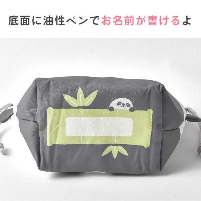 おかおがプリントされたかわいいランチ巾着。ぴょこんと飛び出たお耳もかわいい!滑りのいい紐を使用しているのでお子様でも開けやすい◎底の部分にはお名前が書ける「お名前スペース」があるのでママも安心♪